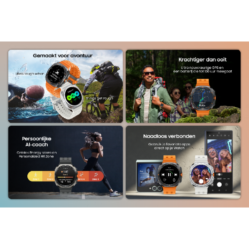 Deze smartwatch is uitgerust met diverse fitnessfuncties en gezondheidstracking, waaronder hartslagmeting, bloeddrukmonitoring en slaaptracking. Met LTE-connectiviteit blijf je verbonden zonder je smartphone, zodat je oproepen kunt beantwoorden en berichten kunt ontvangen. Daarnaast biedt de smartwatch ondersteuning voor wifi, bluetooth 5.3 en NFC voor veelzijdige connectiviteitsopties. Bovendien is de Galaxy Watch Ultra compatibel met diverse sportprofielen, zoals fietsen en hardlopen, en biedt het ondersteuning voor contactloos betalen via Samsung Pay.