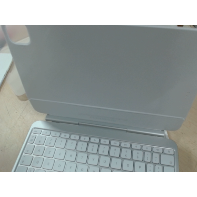 Deze witte Magic Keyboard beschermhoes met AZERTY-toetsenbord is door Apple ontworpen om je iPad Pro 11’’ M4 optimaal te beschermen en te gebruiken. Hij past perfect op je iPad Pro en is eenvoudig te installeren dankzij de magnetische contour. Het toetsenbord met achtergrondverlichting biedt uitzonderlijk typcomfort en bevat een rij van 14 praktische functietoetsen voor snelle toegang tot bepaalde instellingen zoals schermhelderheid en volume. Het geïntegreerde glazen trackpad, met zijn elegante, lichtgewicht ontwerp, heeft een aluminium palmsteun en biedt uitstekende haptische feedback. Het aluminium scharnier is voorzien van een USB-C-aansluiting voor het opladen van je iPad. Tot slot is de case dankzij het zwevende dun, licht en traploos design, verstelbaar voor de perfecte kijkhoek.