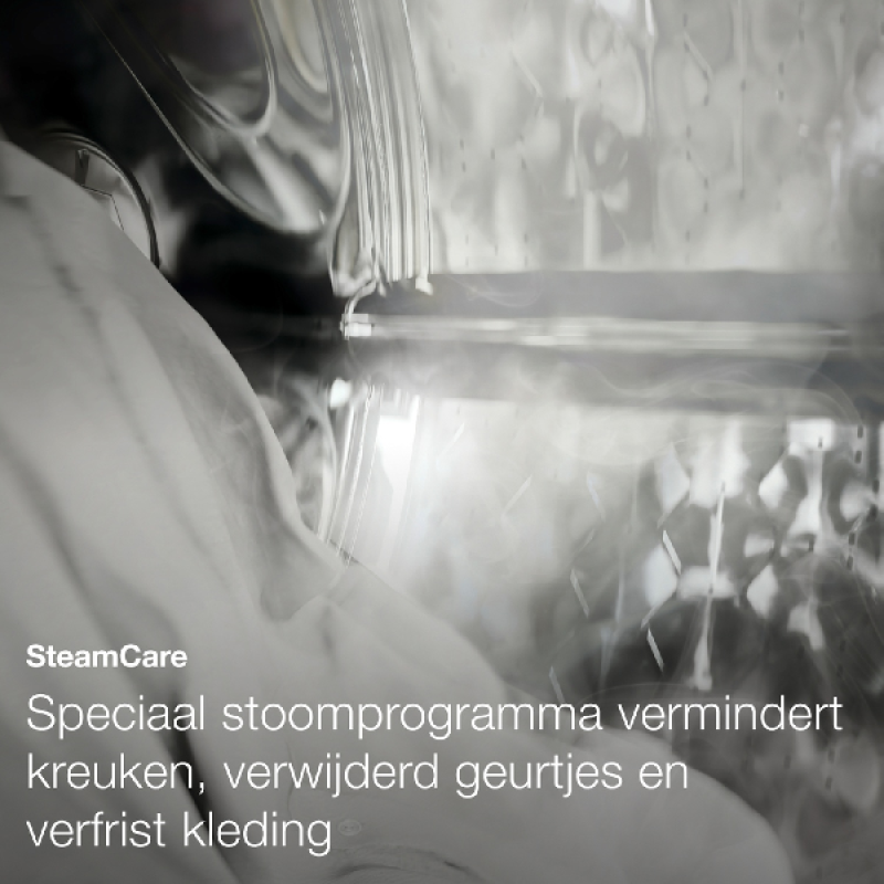 (+) Stoomfunctie: SteamCare vermindert kreuken zichtbaar, waardoor je minder moet strijken.