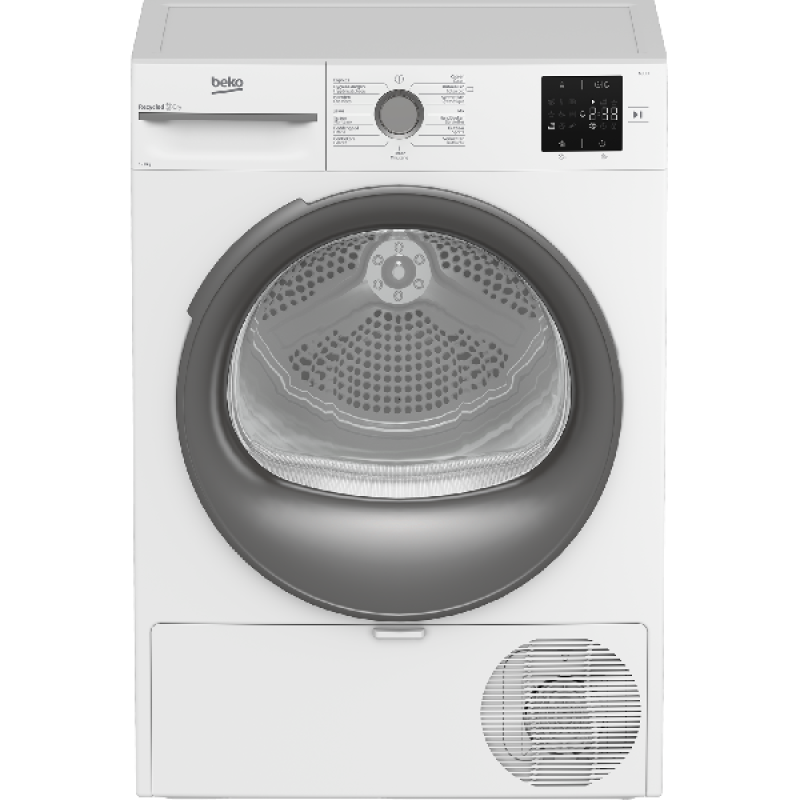 De witte BM3T3823WMM warmtepompdroger van Beko past met zijn moderne design harmonieus in elk interieur. Met zijn standaardafmetingen van (HxBxD) 84,6 x 59,8 x 54,5 cm is hij eenvoudig vrijstaand in je badkamer of wasruimte te installeren. Hij is uitgerust met een grote roestvrijstalen trommel van 8 kg wat hem zeer geschikt maakt voor kleine en middelgrote gezinnen. Hij kan namelijk in één keer een grote hoeveelheid wasgoed efficiënt drogen. De trommel van gegalvaniseerd staal heeft speciaal ontworpen schoepen om de was voorzichtig te verplaatsen, om de kwaliteit van de textiel te behouden. Bovendien geeft het grijze vulvenster aan de voorkant het apparaat een elegante uitstraling.