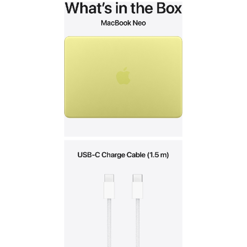 De MacBook Neo wordt geleverd met een USB-C-oplaadkabel, maar zonder lichtnetadapter. Om hem op te laden heb je een USB-C-adapter nodig die USB PD ondersteunt en minimaal 20 watt levert. Apple raadt zijn eigen USB-C-lichtnetadapter van 20 watt aan voor optimaal opladen.